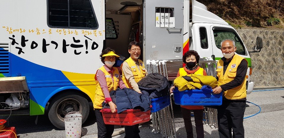 정하복 회장님을 비롯한 자원봉사자 여러분들께 고마움을 전합니다. 그리고 만사를 제쳐 두고 이동빨래방차를 긴급하게 지원해 주신 전라북도자원봉사센터에도 감사드립니다.