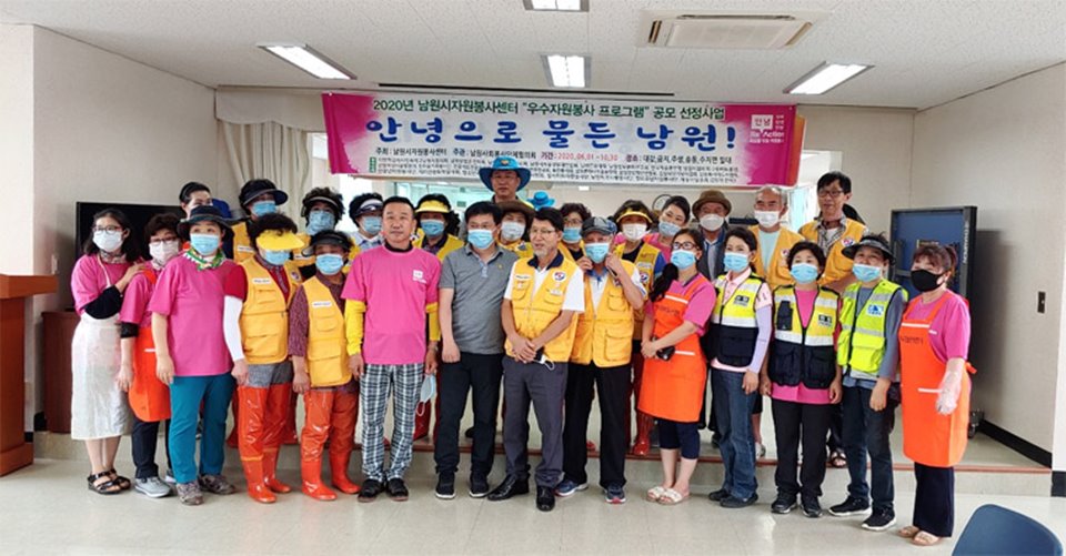 남원사회봉사단체협의회(회장 서일수)는 마을을 순찰하고 주민들의 애로사항을 청취하여 관계기관과 연결해 주고 말벗, 각종예방교육, 이동빨래, 청소, 방역, 회관 출입구 썬팅 등 재능 나눔을 통해 안녕한 마을 만들기에 앞장서고 있다.